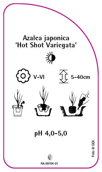 Azalea japonica ‚Hot Shot Variegata‘, 52 x 90 mm