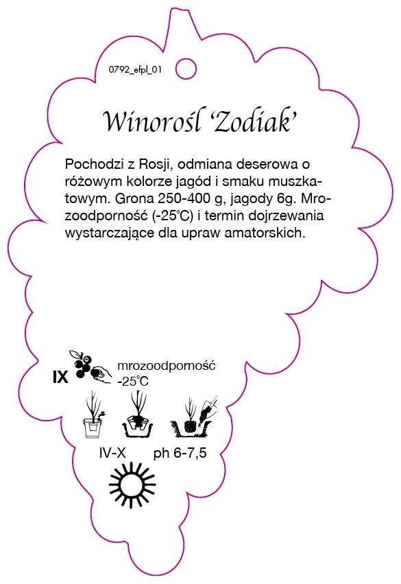 Winorośl ‚Zodiak‘, Dziedzic, 95 x 140 mm